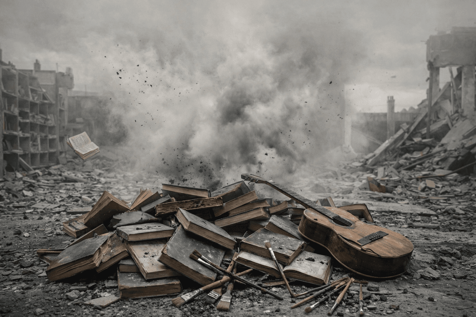Kütüphaneler, arşivler, sanat galerileri de bu kültürel yıkımdan nasibini almıştır. Gazze Şehri’nde ünlü sanatçılar birliğinin binası, müzik okulları ve hatta geleneksel çömlek atölyelerinin bulunduğu El-Fevâhir semti enkaza dönmüştür. Kültürel mirasın kasıtlı tahribi, bir halkın hafızasını ve kimliğini silmeyi amaçlayan bir stratejidir. Merkezi arşivlerin, kültür merkezlerinin ve dini yapıların bombalanması, askeri zorunlulukla açıklanamayacak ölçüde yaygın ve sistematiktir.