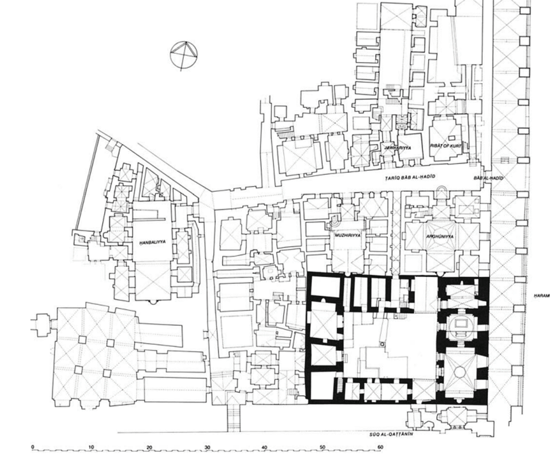 Kuran ilimleri ve fıkıh dersleri için tahsis edilen medrese, günümüzde kuruluş amacından farklı olarak, ev işlevinde kullanılmaktadır. Mescid-i Aksa’nın batı surunda yer alan medrese, Demir Kapı’dan (Babü’l Hadid) dışarıya çıkıldığı zaman soldan ikinci medresedir. Güney cephesinde yer alan pencereleri Mescid-i Aksa’ya bakmaktadır. Mescid-i Aksa’nın avlusuna bitişik olarak inşa edilmiştir. Avluya bitişik olmasından dolayı Arguniyye ve Muzafferiyye medreselerinin arasında değildir. Fakat medreseye ulaşmak için bu iki medrese arasında yer alan bir koridordan ilerlemek gerekmektedir (Aykaç,2020; Uğurluel, 2022).