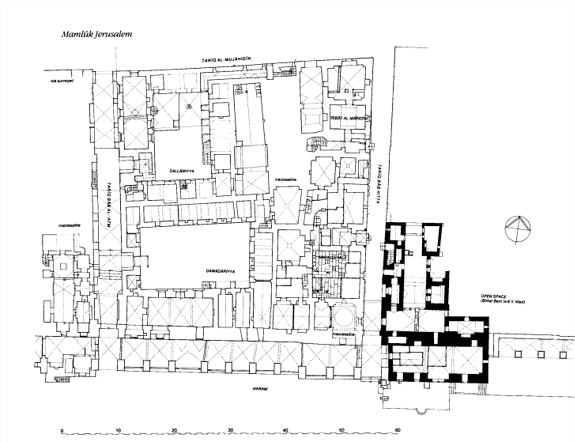Kerimiddin Abdülkerim’in ismi ile anılan Kerimiyye Medresesi, Hıtta Kapısı ile Gadiriyye Medresesi’nin arasında Evhadiyye Medresesi’nin karşısında yer almaktadır. Eğitim yapısı olarak yapılan yapının, Mescid-i Aksa avlusuna bakan cephesinin, avluya bakan pek çok yapıdan farklı olarak revaksız inşa edildiği fark edilmektedir. Yapı, bugün Kudüslü bir ailenin evi olarak kullanımını sürdürmektedir (Burgoyne & Richards, 1987).